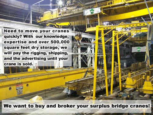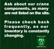 Here at Pennsylvania Equipment, Inc., we specialize in overhead bridge cranes. We are always buying and selling cranes of all capacities and makes. Please browse our inventory by entering our various cranes links at the top of the page.
